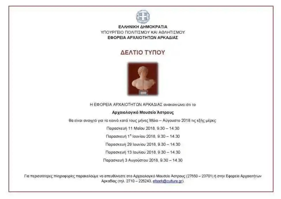 - Το ΥΠΠΟΑ έχει νομική και ηθική υποχρέωση να ανοίξει το Αρχαιολογικό Μουσείο Άστρους .